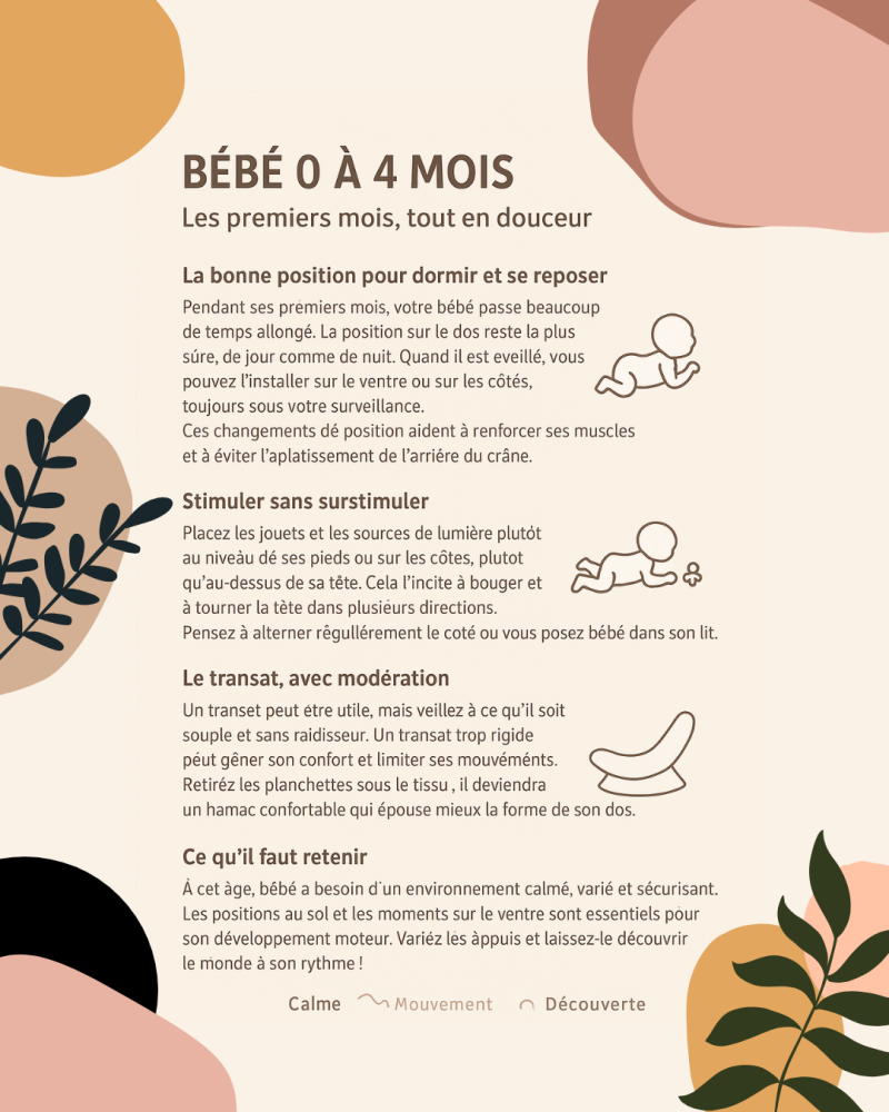 • Dos toujours pour bébé ! 🛌 La position la plus sûre, jour et nuit. Temps sur le ventre et les côtés indispensable pour des muscles forts et un joli crâne rond. Surveillance obligatoire quand il est éveillé ! 👶
