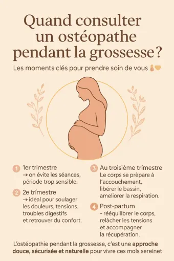 Plus l’intervention ostéopathique est précoce, plus les résultats sont probants. Idéalement, une première évaluation peut avoir lieu dès les premières semaines de vie, surtout en cas de naissance difficile (utilisation de forceps, ventouse, présentation en siège, accouchement prolongé, etc.). L’ostéopathe travaille toujours en étroite collaboration avec les parents, en leur expliquant les gestes à adopter à la maison pour varier les appuis et encourager une motricité équilibrée.